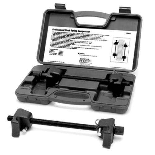 Part Description: Strut Spring Compressor Professional strut spring compressor tech kit. For most automotive and light truck applications. Includes locking pins for additional safety. Drop forged steel constructed. Bilingual instructions.